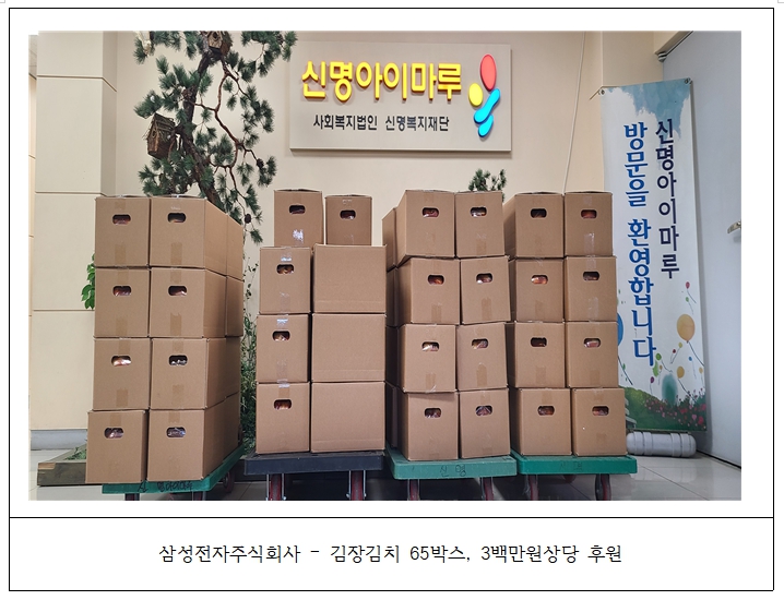 2025.11.21. »ï¼ºÀüÀÚÁÖ½Äȸ»ç¿¡¼­ ±èÀå±èÄ¡ 65¹Ú½º (3¹é¸¸¿ø »ó´ç)¸¦ ÈÄ¿øÇØÁּ̽À´Ï´Ù.