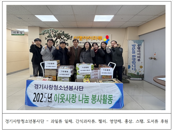2025.12.26. °æ±â»ç¶ûû¼Ò³âºÀ»ç´Ü¿¡¼ °úÀÏ·ù ÀÏü, °£½Ä°úÀÚ·ù, Á©¸®, ¿µ¾çÁ¦, È«»ï, ½ºÆÔ, µµ¼·ù µîÀ» ÈÄ¿øÇØÁּ̽À´Ï´Ù.