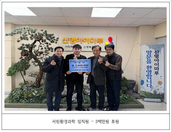 2025.12.31. ¼­¸°È¯°æ°úÇÐ ÀÓÁ÷¿øÀϵ¿²²¼­ ÈÄ¿ø±Ý 3¹é¸¸¿øÀ» ÈÄ¿øÇØÁּ̽À´Ï´Ù.