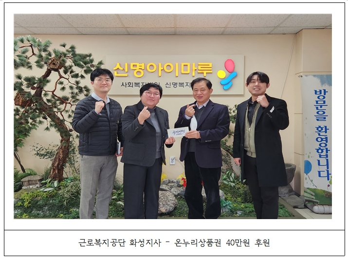 2024.01.22. ±Ù·Îº¹Áö°ø´Ü È­¼ºÁö»ç¿¡¼­ ¿Â´©¸®»óǰ±Ç 40¸¸¿ø¸¦ ÈÄ¿øÇØÁּ̽À´Ï´Ù.