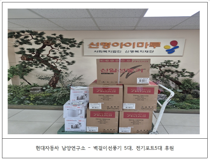 2025.04.21. Çö´ëÀÚµ¿Â÷ ³²¾ç¿¬±¸¼Ò¿¡¼­ º®°ÉÀÌ ¼±Ç³±â 5´ë, Àü±âÆ÷Æ® 5´ë¸¦ ÈÄ¿øÇØÁּ̽À´Ï´Ù.
