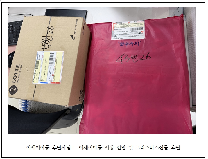 2025.12.19. ÀÌÀçÀ̾Ƶ¿ ÈÄ¿øÀÚ´Ô²²¼­ ÀÌÀçÀ̾Ƶ¿ ÁöÁ¤ ½Å¹ß ¹× Å©¸®½º¸¶½º ¼±¹° µîÀ» ÈÄ¿øÇØÁּ̽À´Ï´Ù.