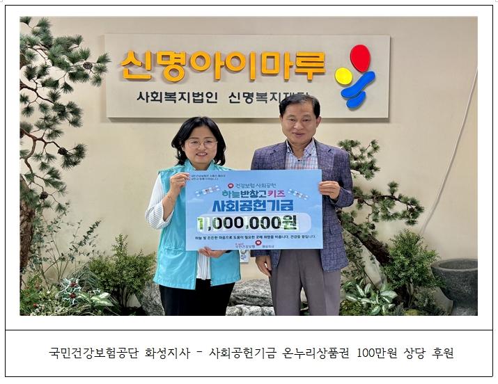 2025.06.23. ±¹¹Î°Ç°­º¸Çè°ø´Ü È­¼ºÁö»ç¿¡¼­ »çȸ°øÇå±â±Ý ¿Â´©¸®»óǰ±Ç 100¸¸¿ø»ó´çÀ» ÈÄ¿øÇØÁּ̽À´Ï´Ù.