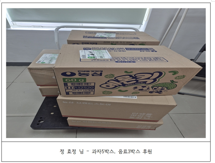 2025.09.11. Á¤ È¿Á¤´Ô²²¼­ °úÀÚ 5¹Ú½º, À½·á 3¹Ú½º¸¦ ÈÄ¿øÇØÁּ̽À´Ï´Ù.