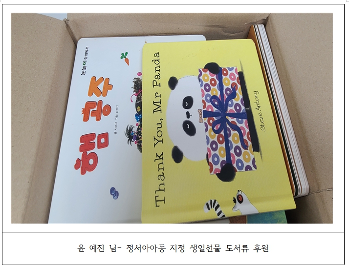 2025.09.15. À±¿¹Áø´Ô²²¼­ Á¤¼­¾Æ ¾Æµ¿ ÁöÁ¤ »ýÀϼ±¹° µµ¼­·ù¸¦ ÈÄ¿øÇØÁּ̽À´Ï´Ù.