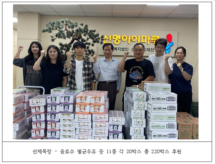 2025.09.23. ¼±Á¦¸ñÀå¿¡¼­ À½·á¼ö ¸ê±Õ¿ìÀ¯ µî 11Á¾ µî °¢ 20¹Ú½º ÃÑ 220¹Ú½º¸¦ ÈÄ¿øÇØÁּ̽À´Ï´Ù.