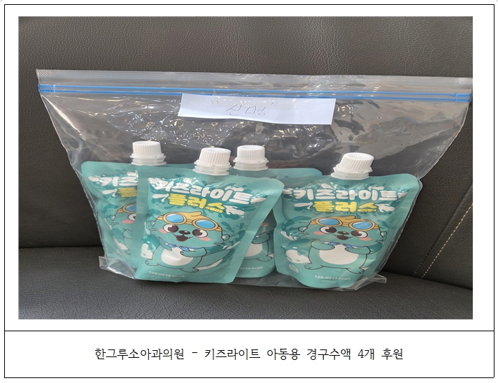 2025.10.01. Çѱ׷ç¼Ò¾ÆÃ»¼Ò³â°úÀÇ¿ø ¼Û±ÝÈ£ ¿øÀå´Ô²²¼­ ŰÁî¶óÀÌÆ® ¾Æµ¿¿ë °æ±¸¼ö¾× 4°³¸¦ ÈÄ¿øÇØÁּ̽À´Ï´Ù.