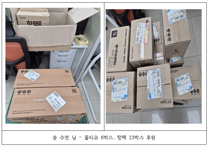 2025.11.06. ¼Û¼ö¿¬´Ô²²¼­ ¹°Æ¼½´ 6¹Ú½º, ÇÖÆÑ 23¹Ú½º µîÀ» ÈÄ¿øÇØÁּ̽À´Ï´Ù.