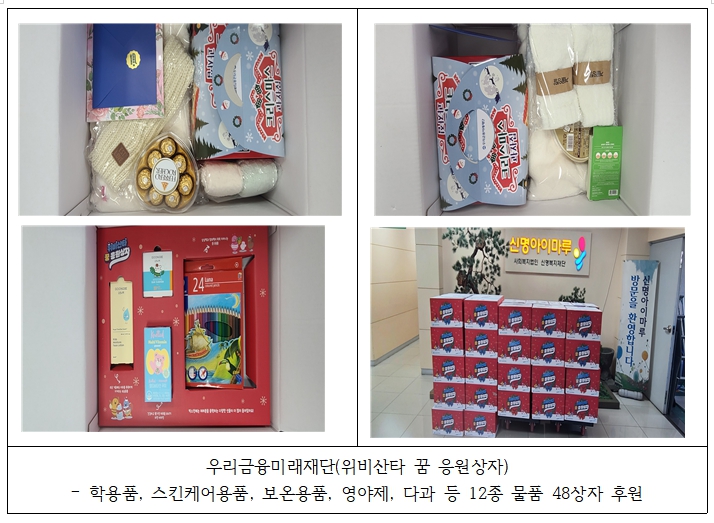 2025.12. 17. ¿ì¸®±ÝÀ¶¹Ì·¡Àç´Ü¿¡¼ 2025³â ¾çÀ°½Ã¼³ ¾Æµ¿ Å©¸®½º¸¶½º ¹°Ç° Áö¿ø»ç¾÷ [À§ºñ»êŸ ²Þ ÀÀ¿ø»óÀÚ] 48°³¸¦ ÈÄ¿øÇØÁּ̽À´Ï´Ù.ÀÀ¿ø»óÀÚ¿¡´Â Çпëǰ, ½ºÅ²Äɾî¿ëǰ, º¸¿Â¿ëǰ, ¿µ¾çÁ¦, ´Ù°ú µî ¹°Ç° 12Á¾À» ÈÄ¿øÇØÁּ̽À´Ï´Ù.¾Æµ¿µé Å©¸®½º¸¶½º ¼±¹°·Î Àß Àü´ÞÇÏ¿´½À´Ï´Ù. °¨»çÇÕ´Ï´Ù.